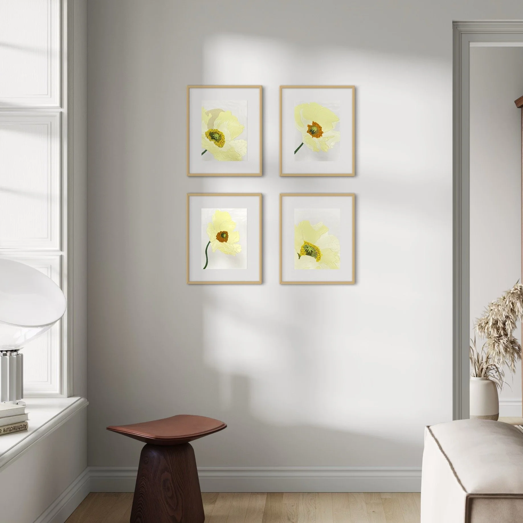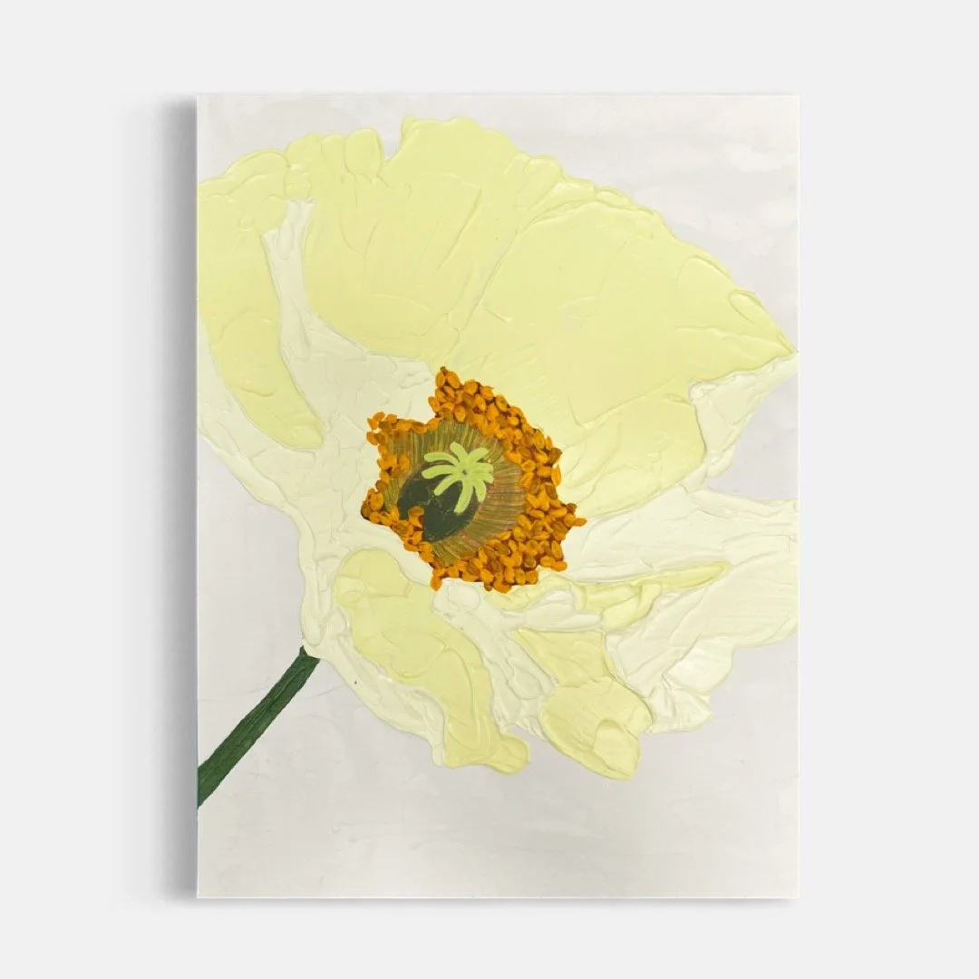 This Lemon Poppy series have textured, sculptural florals with an airy, sunlit vibe. The pastel lemon blooms take center stage against the soft cream background. The paintings are a modern take on florals - bright, calming, and a little dreamy.